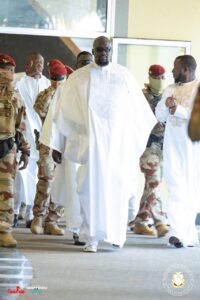 Entouré de proches collaborateurs, notamment le Ministre Secrétaire Général de la Présidence, le Général Amara CAMARA, le Ministre Directeur de Cabinet de la Présidence, Djiba DIAKITÉ, les conseillers à la Présidence ainsi que des membres du gouvernement et de l’administration publique, le Chef de l’État a rejoint la foule vers 9 heures pour s’acquitter de son devoir religieux.