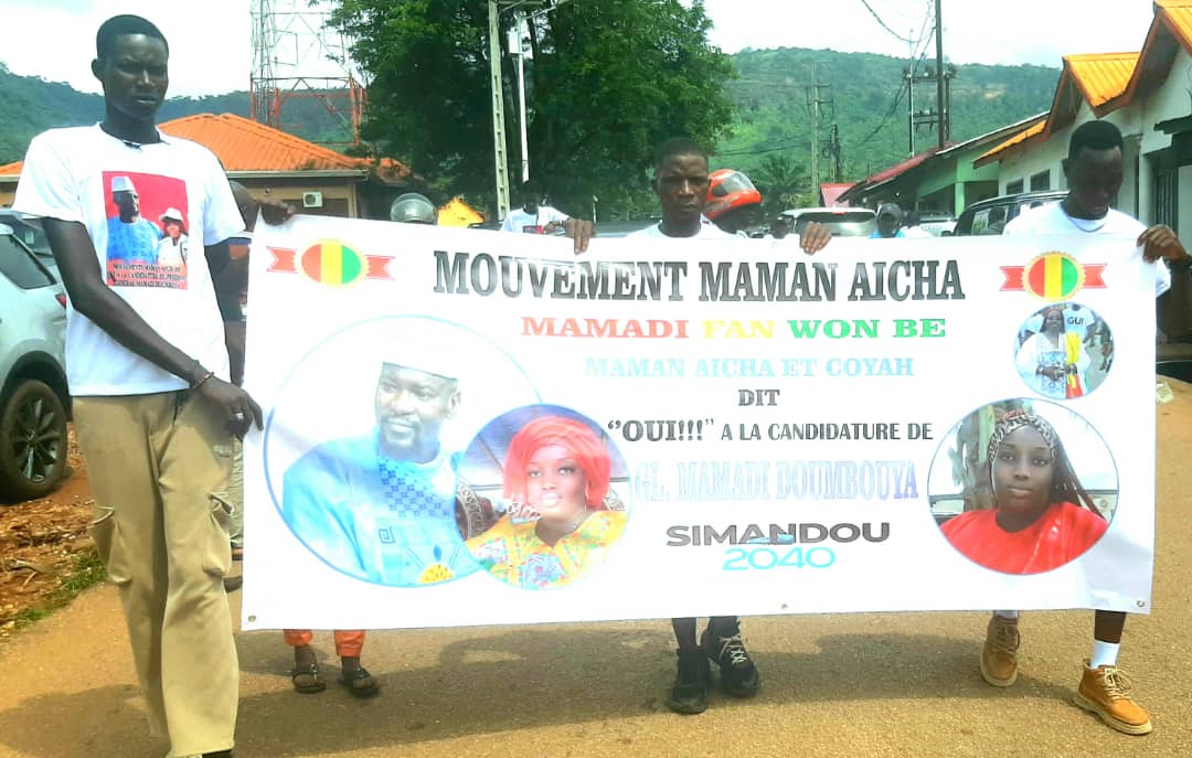 «Je suis vraiment comblé de joie et de motivation qui m’anime aujourd’hui pour cette journée de demande à la candidature du Général président Mamadi Doumbouya au prochain élection présidentielle du 28 décembre prochain. Nous sommes tous que le président ne peut pas se reculer en arrière il doit s’acquitter de tout pour continuer le travail qu’il a commencé pour le peuple de Guinée. Nous ne sommes pas spectatrices du changement, mais actrices de la transformation nationale, nous formulons un appel avec respect et confiance, au Président de la République à se présenter à l’élection présidentielle afin de poursuivre cette noble mission entamée pour la Guinée. Notre pays a besoin de stabilité, de continuité de vision et nous croyons que sous son conduit, la Guinée peut continuer à avancer sur la voie du développement, de la paix et de la prospérité », a déclaré la présidente du mouvement Maman Aïcha.
