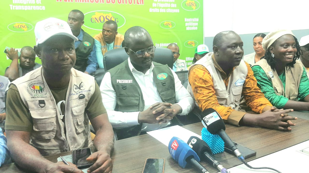 C’est pour cette raison que les faîtières de la Société Civile, Organisations de Jeunes, de Femmes et des personnes vivant avec un Handicap étaient devant les médias ce lundi 08 septembre 2025, au grand siège du CNOSCG à Dixinn afin de livrer un communiqué sur la participation citoyenne pour le retrait massif des cartes référendaire en Guinée.