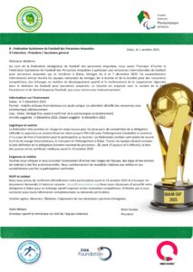 À quelques jours du tournoi sous-régional prévu du 6 au 8 décembre 2025 au Sénégal, l’Équipe Guinéenne de Football pour Amputés, officiellement invitée à prendre part à cette compétition, se retrouve dans une situation difficile.