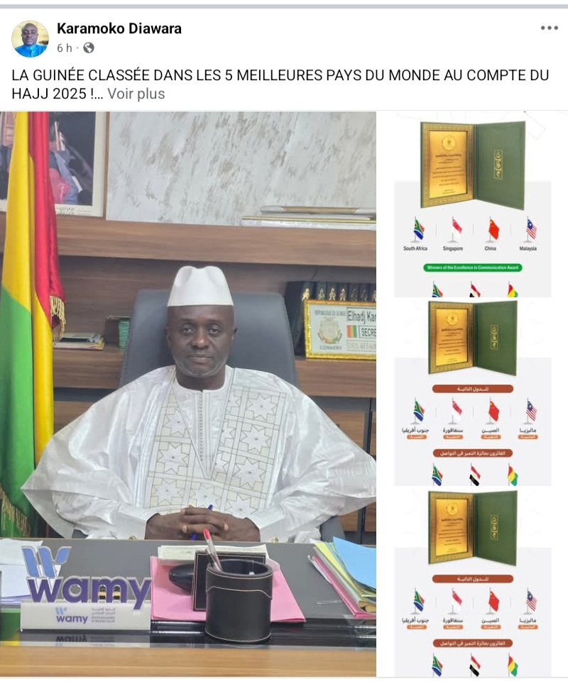 C’est avec une fierté profonde et une immense gratitude que nous portons à la connaissance de la nation toute entière, la distinction internationale dont la Guinée vient d’être honorée dans le cadre du Hadj 2025.